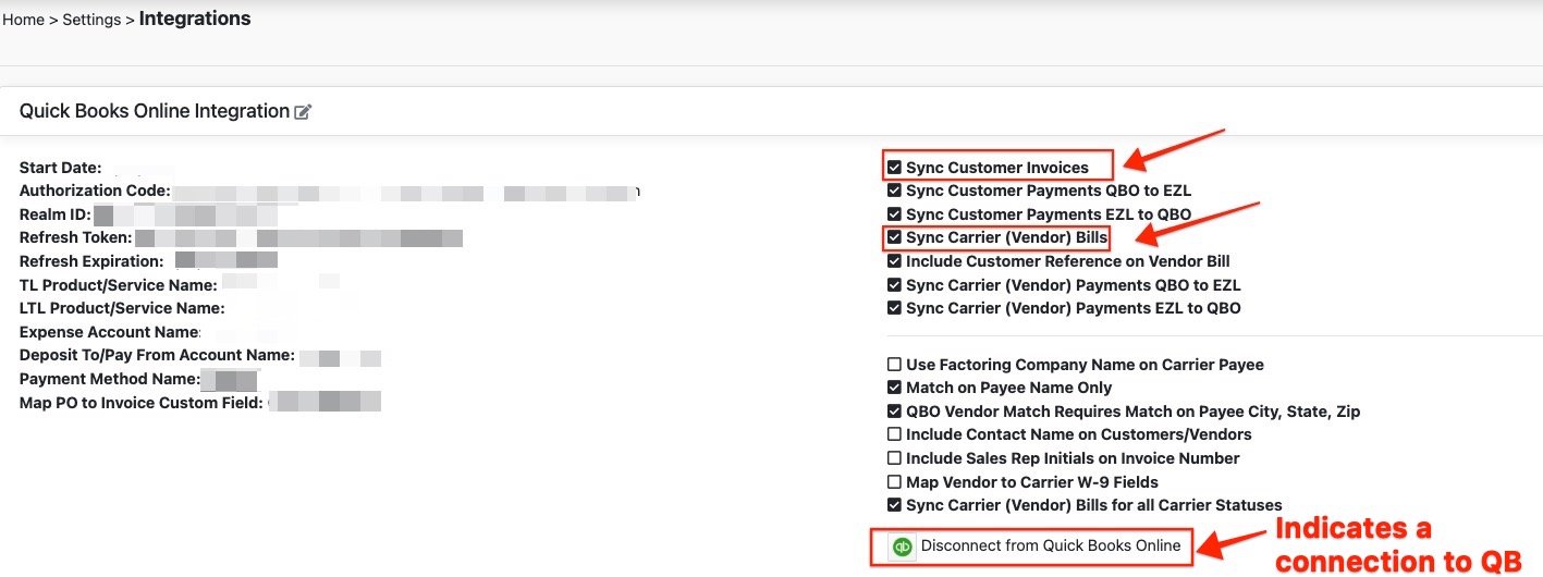 - A Carrier Bill must have already sync'd from EZ Loader to Quickbooks