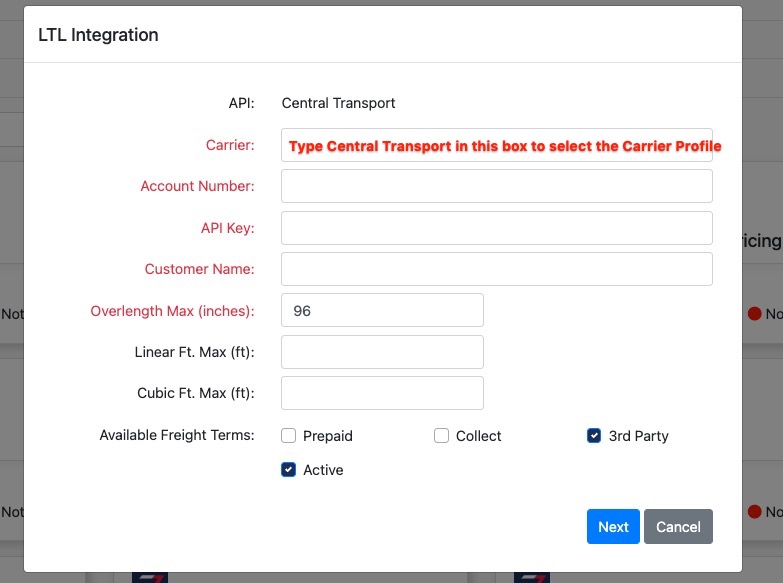 How to Connect your Central Transport LTL Integration