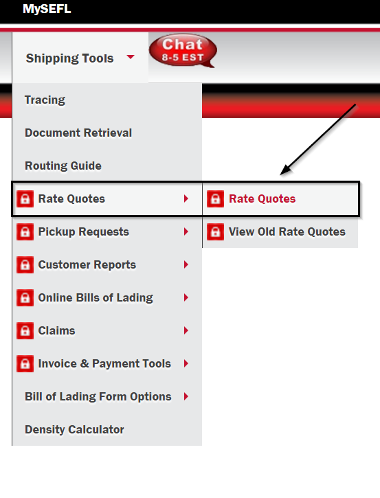 - After logging in, move to the Shipping Tools list and select the Rate Quotes sub tab under the Rate Quotes main tab